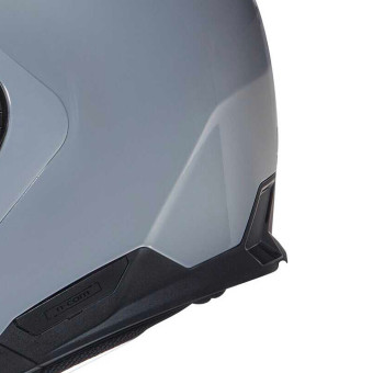 - Rotación de la mentonera: la trayectoria elíptica mantiene la parte frontal del casco en posición abierta. De este modo, se reduce considerablemente el efecto "vela" y se garantiza el confort de conducción, incluso con la mentonera levantada.