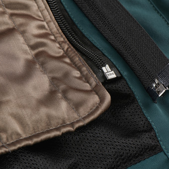 - Protectores de codos y hombros D3O desmontables con homologación CE de nivel 1