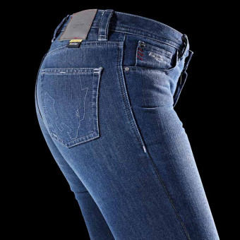 - Pantalón vaquero para moto de mujer con homologación CE y EPI (clase AAA)